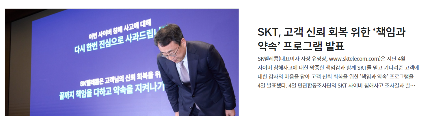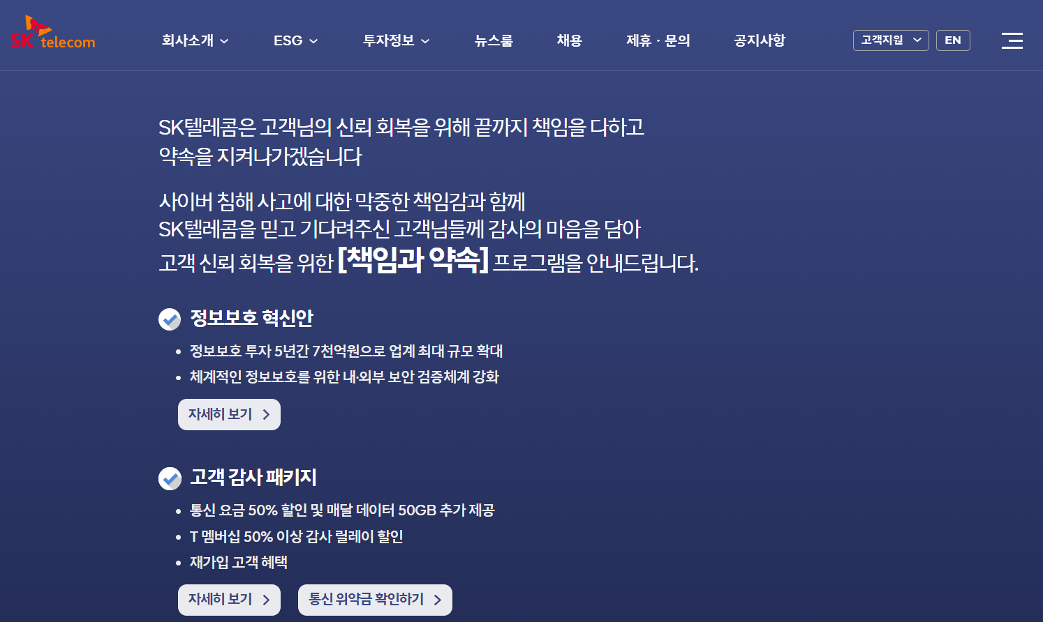 - 유심 교체 비용 환급: 4월 19일~27일 자비로 교체한 고객은 증빙 제출 시 환급.