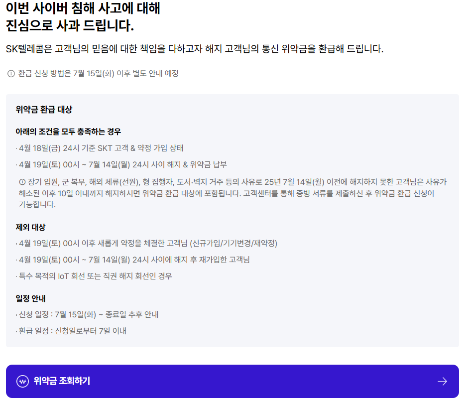 약 2,500만 명의 개인정보 유출로 통신사를 변경한 고객들 중 위약금을 납부한 경우, SK텔레콤이 환급과 추가 보상을 제공합니다. 이 글에서는 위약금 환급 대상, 신청 방법, 요금 할인 등 보상 패키지를 상세히 정리했습니다.